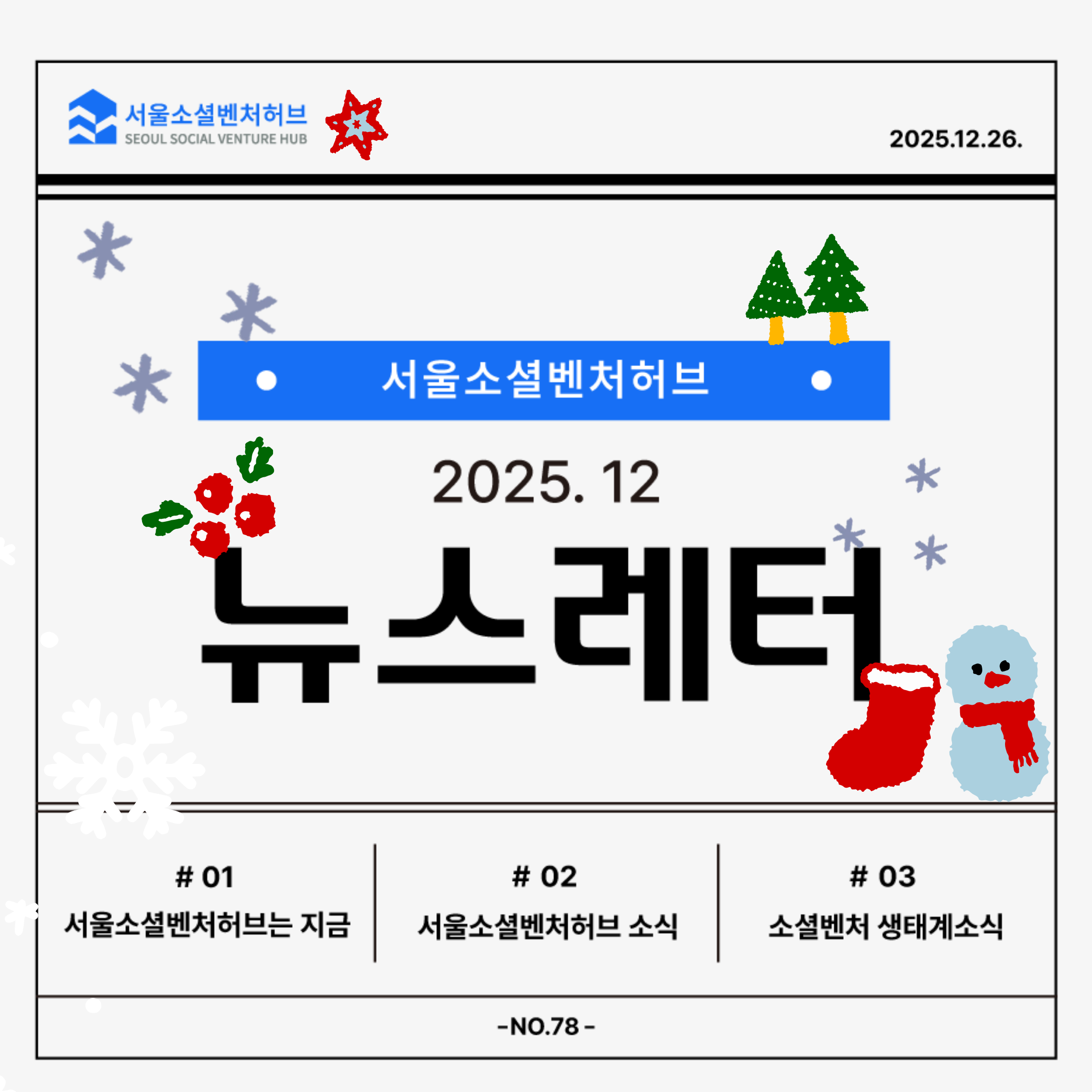 다가오는 새해에도 건강과 기쁨이 늘 함께하시길 바라며 ✨ 서울소셜벤처허브는 내년에도 더욱 알차고 새로운 모습으로 찾아뵙겠습니다.