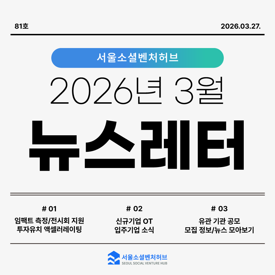 서울소셜벤처허브와 기술보증기금이 이에 대한 해답을 제시하는 ‘2026 소셜벤처 임팩트 측정 사업설명회(1차)’를 개최합니다.