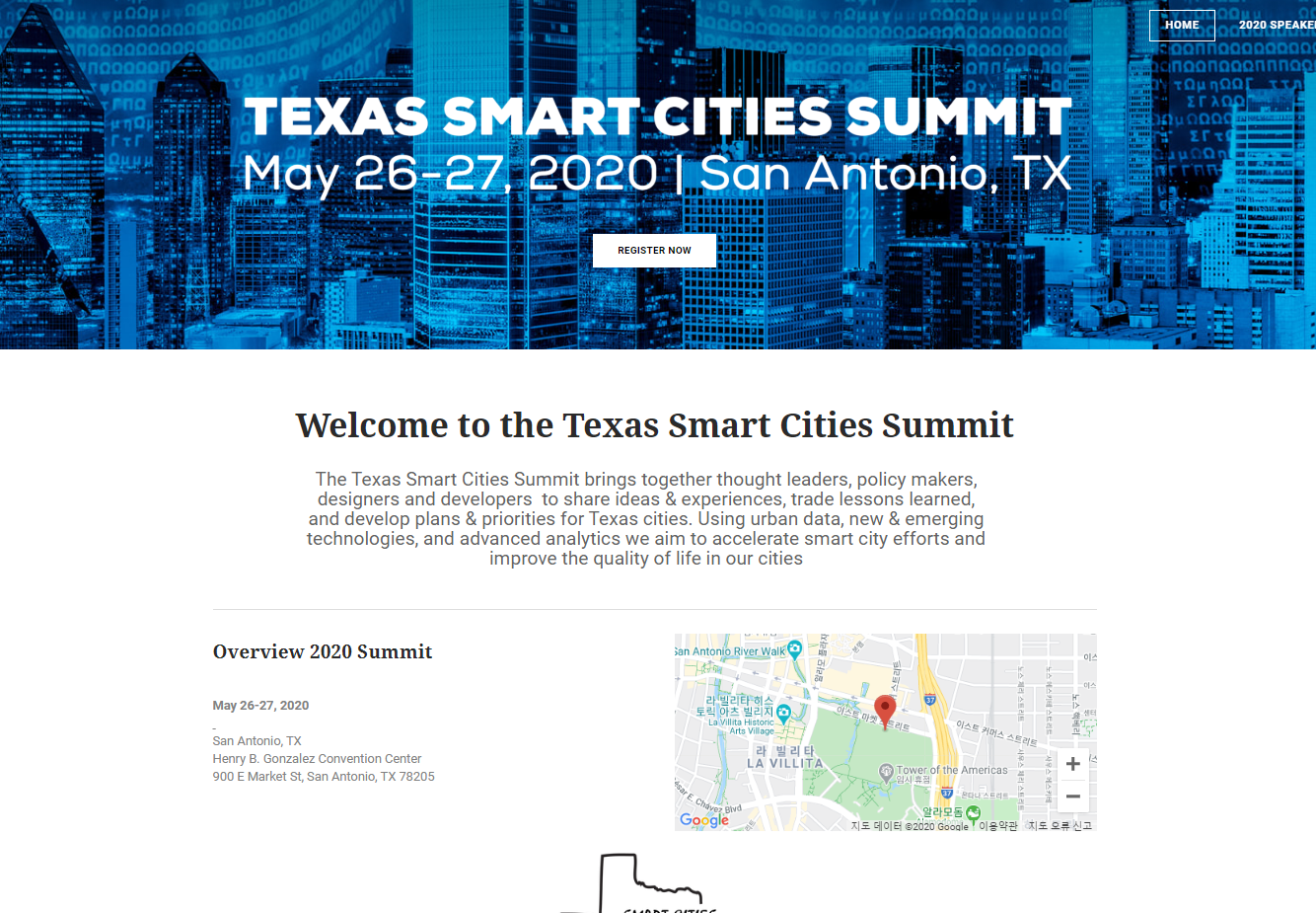 텍사스에서 2019년 개최된 Texas Smart Cities Summit의 내용을 확인할 수 있는 웹페이지