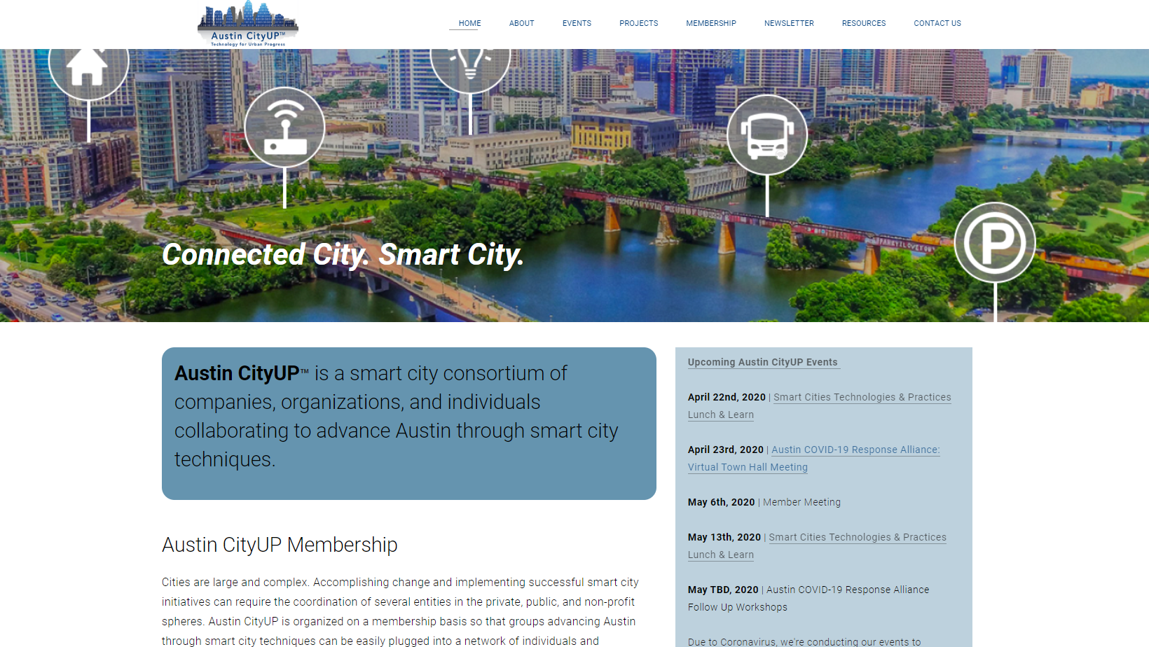 오스틴 시, 기업, 시민 및 비영리 기관이 협업하여 오스틴 스마트시티 인프라를 구축하는 플랫폼인 CityUP 웹사이트