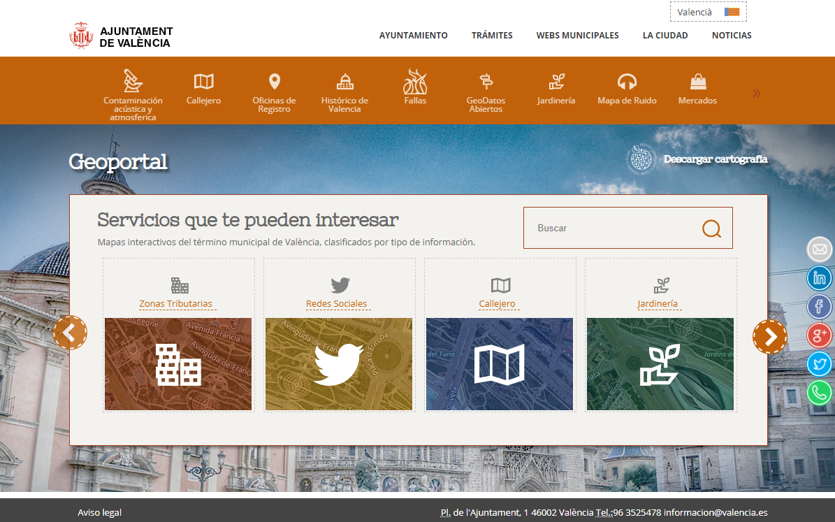 GIS 포털 프로젝트를 통해 발렌시아 시의회의 다양한 리소스를 지도로 시민에게 제공하는 웹사이트