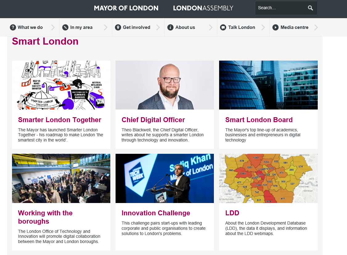 런던을 '세계에서 가장 똑똑한 도시'로 만들기위한 로드맵인 Smarter London Together는 도시를위한 유연한 디지털 마스터 플랜을 구성되어 TfL에서 NHS에 이르기까지 수도의 자치구 및 서비스와 어떻게 협력해야 하는지를 보여주는 웹사이트