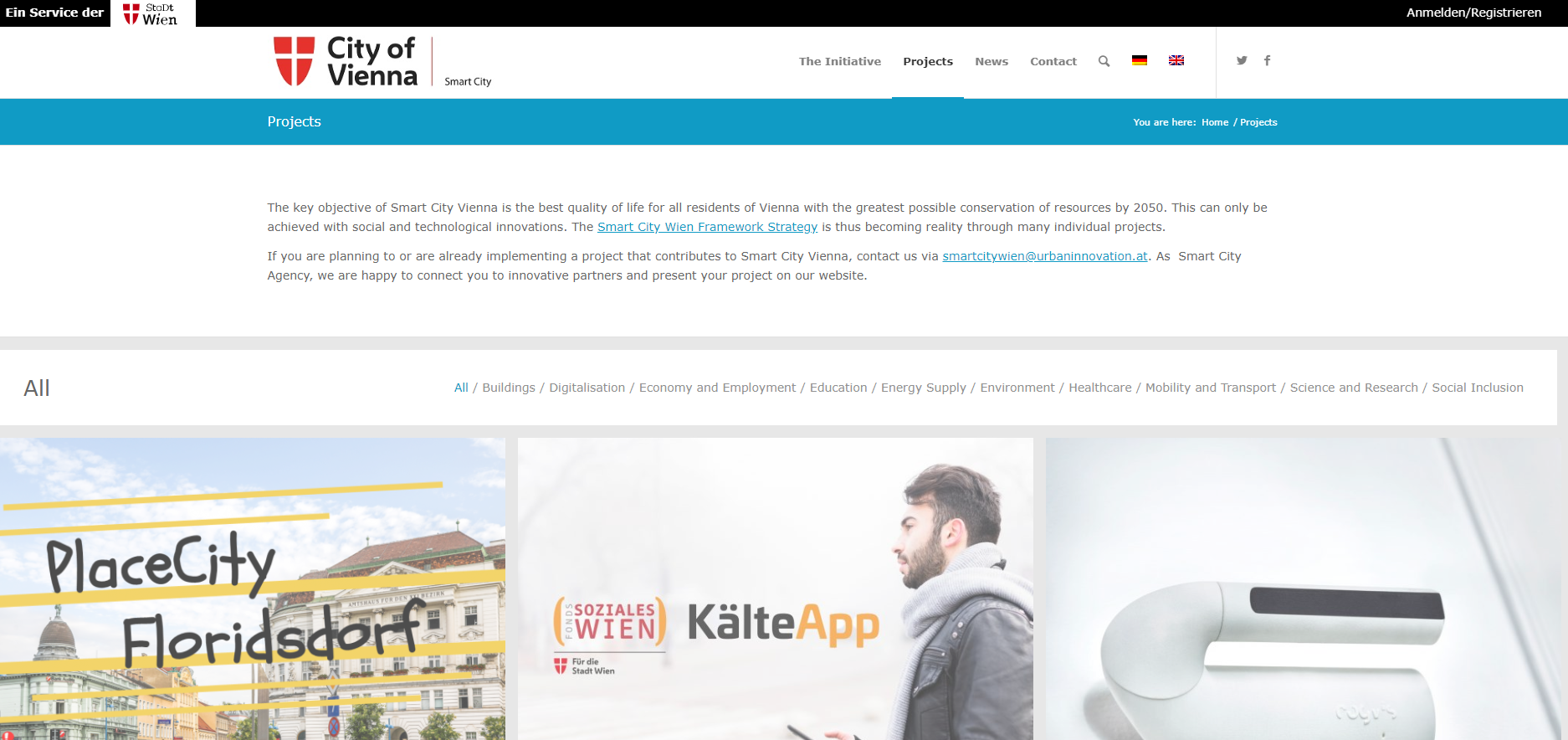 비엔나에서 진행중인 스마트시티 프로젝트 내용과 관련 뉴스를 확인할 수 있는 공식 웹사이트