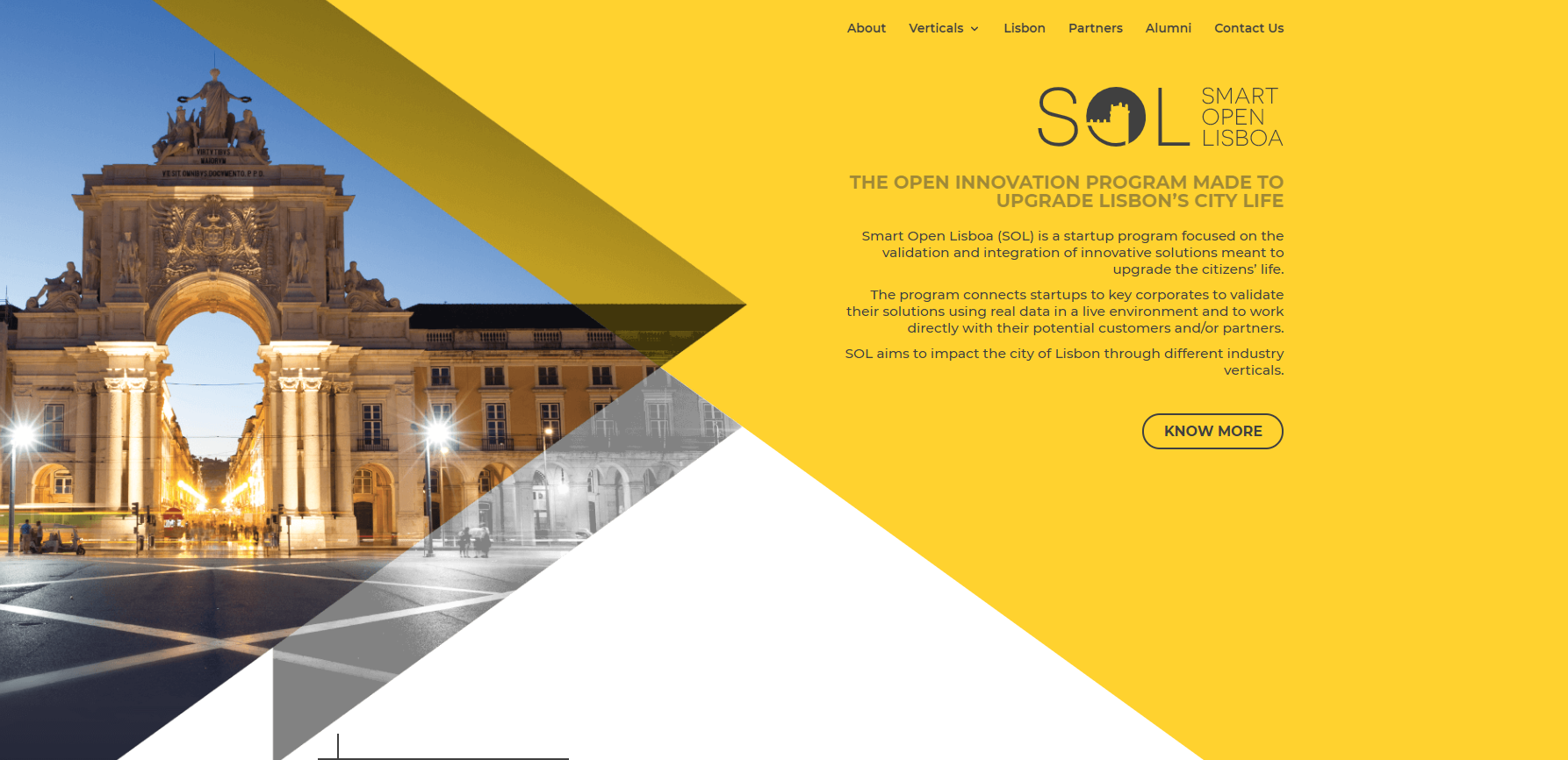 시민들의 삶을 향상시키기 위한 혁신적인 솔루션의 검증과 통합에 초점을 맞춘 스타트업 프로그램 관련 웹사이트
