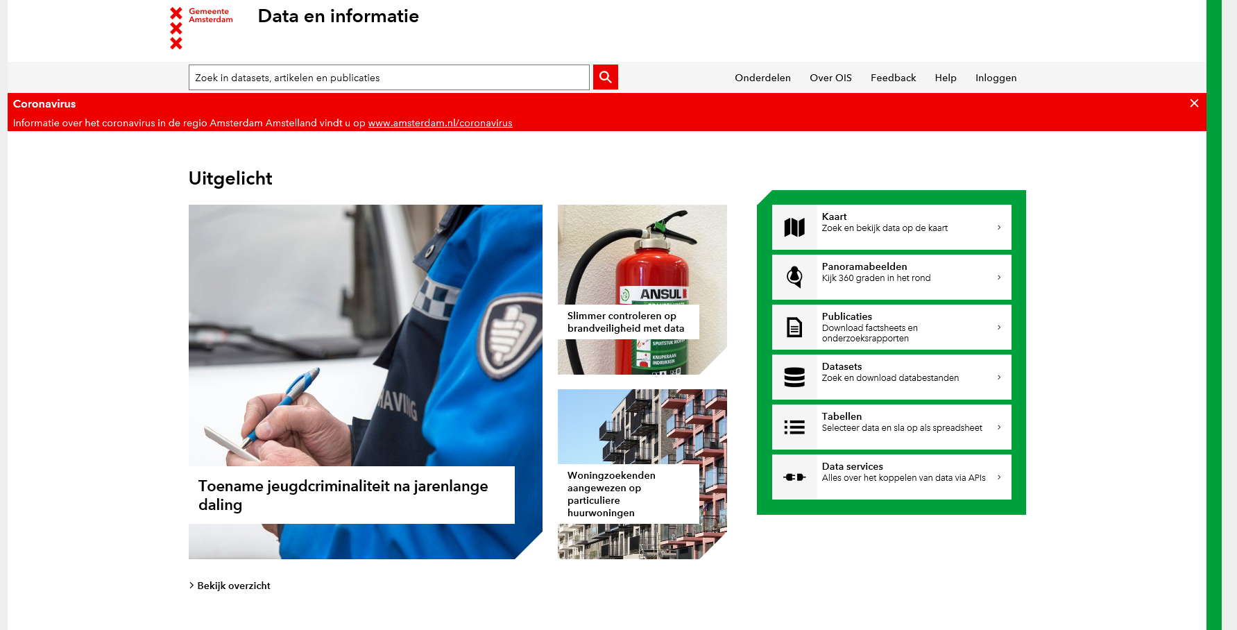 암스테르담 도시 데이터를 다운로드 받을 수 있는 공공 데이터 제공 웹사이트