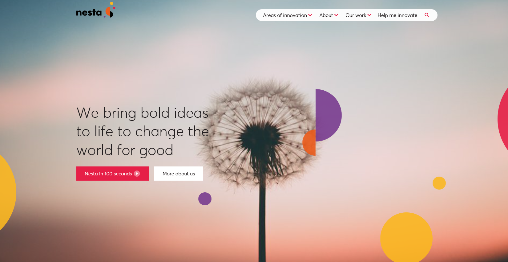 유럽 내 사회혁신을 연구하는 기관으로 사회혁신, 시민참여 등의 연구, 프로젝트 관련 정보를 제공하는 Nesta 웹사이트