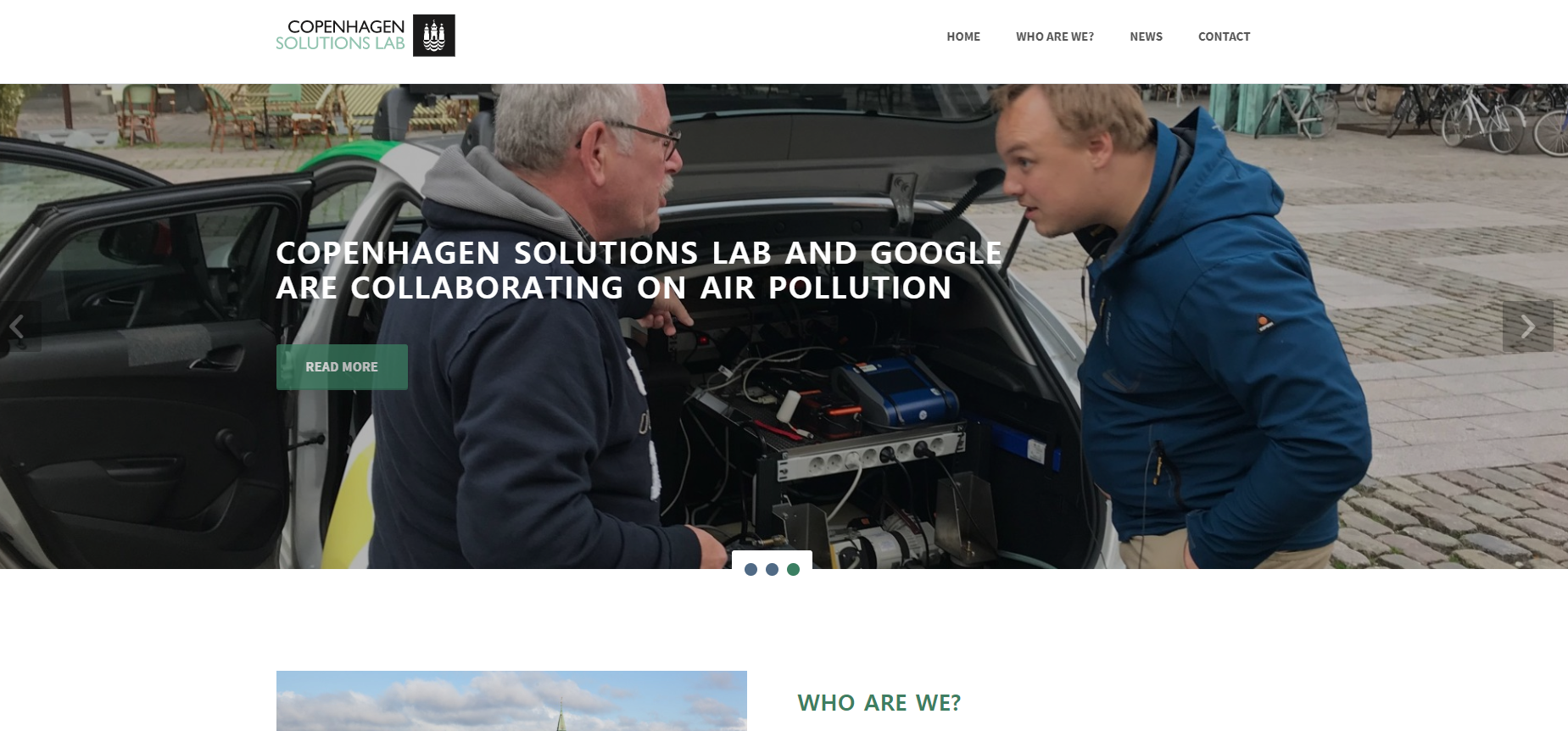 인텔리전트 기술과 협력하여 도시와 시민에게 적합한 데이터 중심 솔루션을 제공하는 코펜하겐 솔루션 연구소 (Copenhagen Solutions Lab) 웹사이트