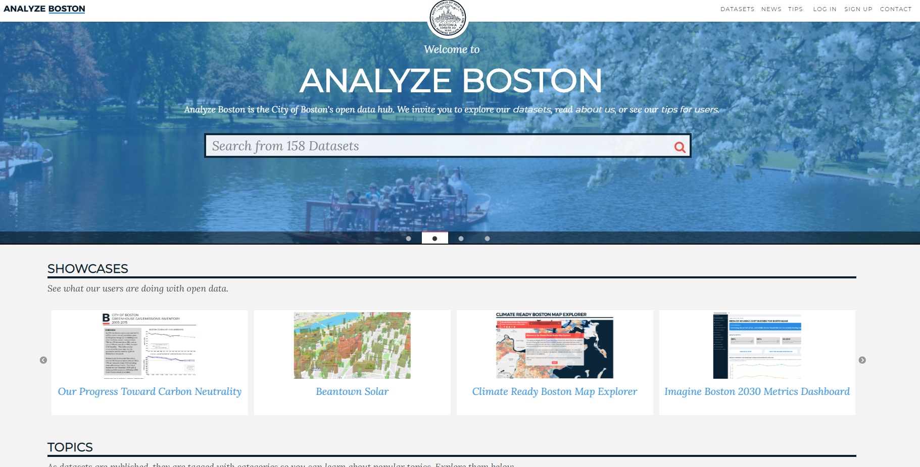 보스턴의 공공데이터 허브로, 공공데이터와 이용 방법 팁(Tip)들을 제공하는 웹사이트