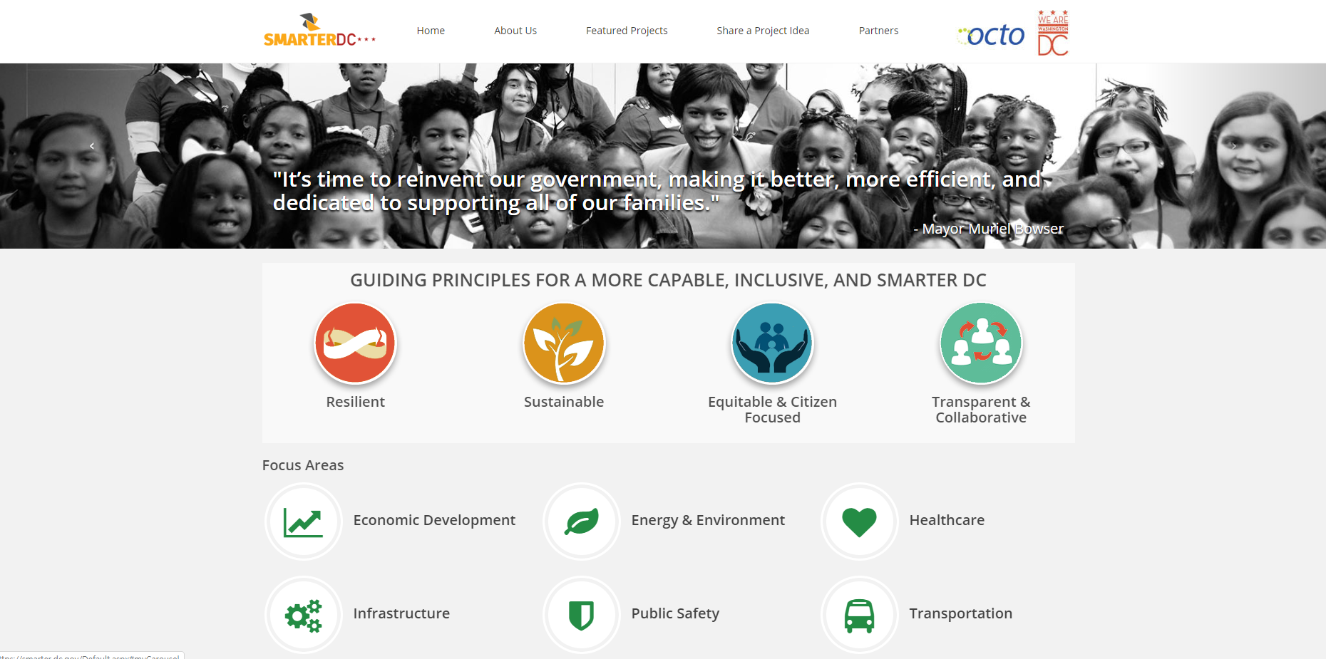 워싱턴 DC에서 진행중인 스마트시티 프로젝트와 각 프로젝트의 진행 상황 정보를 제공하고, 개인 및 기업이 프로젝트에 대한 아이디어를 제시할 수 있는 공식 웹사이트