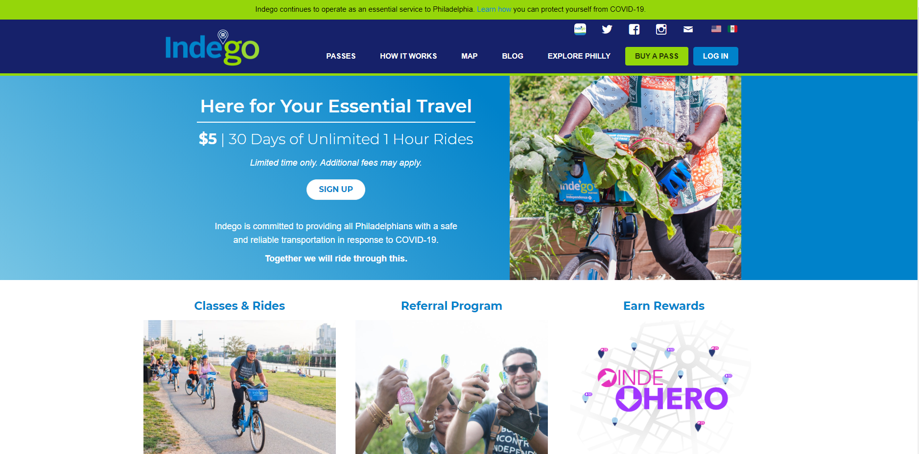 필라델피아 자전거 쉐어링 플랫폼 Indego 웹사이트